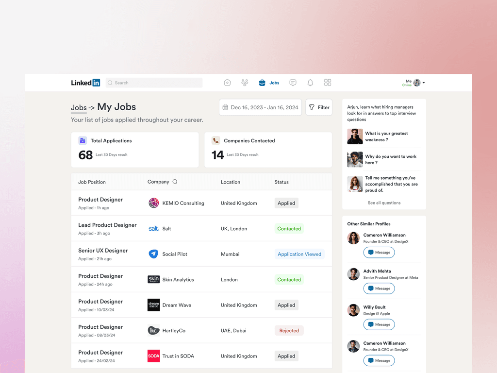 Users are having difficult time tracking their job applications within linkedin web apps.